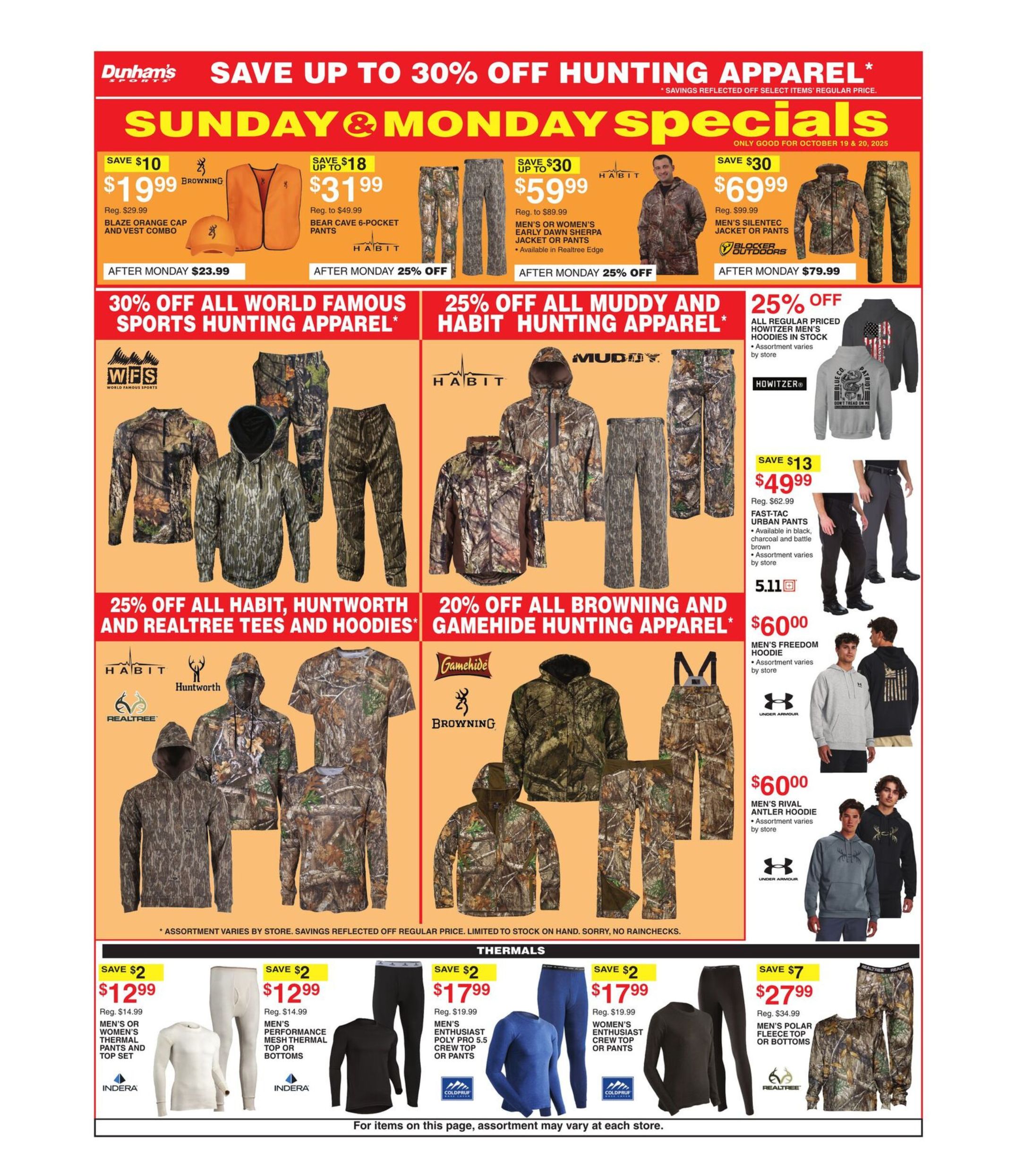 Check out the latest Dunham weekly ad 17-23oct,2025 to find big savings on sports gear, outdoor tools, and more. This week’s flyer brings fresh deals on shoes, clothes, and hunting items. You can also spot limited-time offers that help you save more. The weekly flyer is updated often, so don’t miss the new deals that pop up every week.